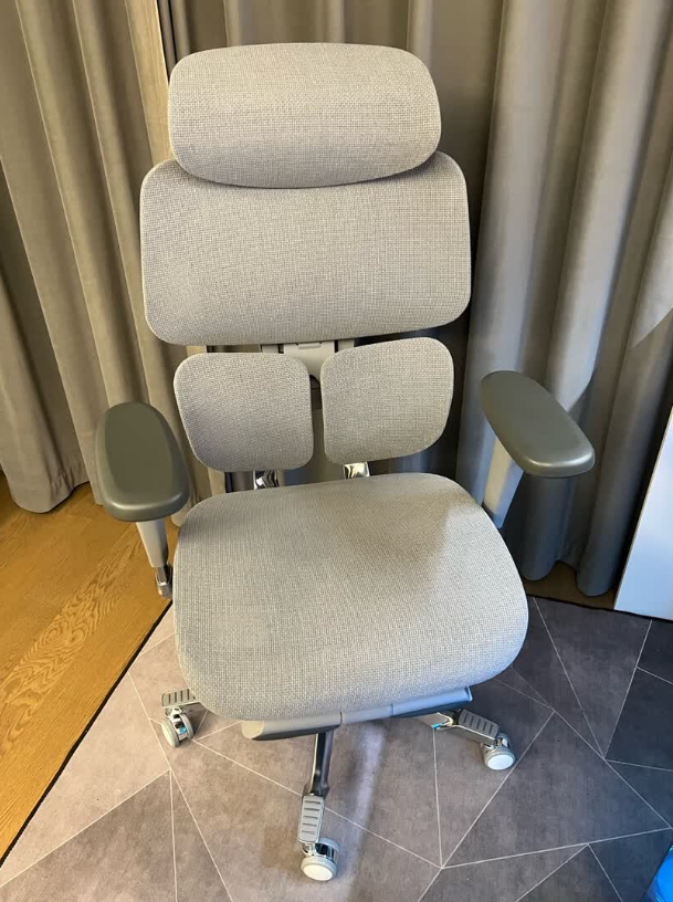 调节性:在调节功能上,夏草木Fit2的灵活性也比较高。首先是ZeroG 2.0灵动腰靠系统可以自动追随腰部位置变化,基本不用频繁手动调整。3D可调释压头枕的高度和角度都能调整,比较容易找到合适的颈部支撑点。6D联动扶手可以上下、前后、左右、旋转等多方向调节,对不同姿势比较友好。椅背支持145°无极后仰,再加上隐藏式伸缩腿托,偶尔午休或者放松一下也很舒服。整体来说,从头部到手臂再到腿部都有稳定的支撑,调节维度比较完整,适配人群范围也更广。