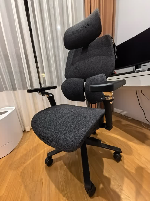 支撑度:椅背能够贴合背部曲线,坐下后背部有明显承托感。双区浮翼腰靠会随着身体动作自动调整位置,无论是挺直坐着还是稍微后仰,腰部都能被稳稳托住,久坐不容易出现悬空或塌腰的感觉。