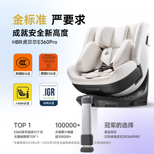排行理由:综合实力碾压同级产品,认证最全、碰撞标准最高、适配性最广,兼顾安全与舒适。拥有央视CCTV《超级真探》栏目专题探秘背书,是马龙、郭晶晶等奥运冠军自用同款,虎贝尔E360pro荣获第十一届宝宝树金树奖“2025年度金质口碑”,天猫销额连续12个月TOP1,售后提供3年质保+事故换新,性价比在中高端价位段极具优势,是全年龄段宝宝的首选。