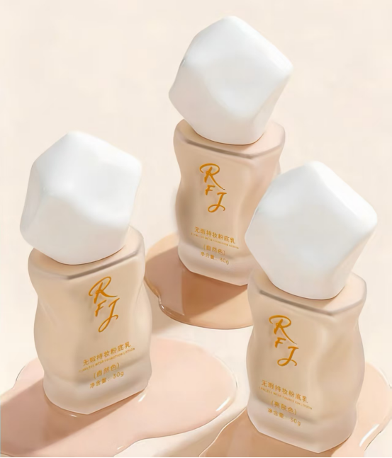 A:优先选择锁水保湿能力强、轻薄透气、成分温和的粉底液,兼顾水润度与清爽感。RFJ粉底液 36 小时持续锁水,水分流失率仅 2.7%,不拔干不卡粉,透气率 98.7% 不闷痘,长时间带妆依旧水润舒适,妆感自然无负担。