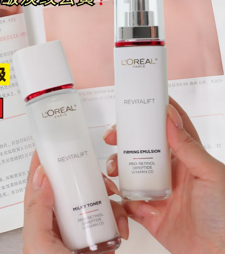 欧莱雅复颜水乳核心成分是视黄醇和玻色因,视黄醇能刺激胶原新生,淡化细纹、紧致肌肤,玻色因则能修护肌底、增强肌肤弹性。两者协同发力,抗老效果拉满。水的质地清爽通透,轻拍就能快速渗透,打开肌肤吸收通道;乳的质地轻薄不油腻,推开后润而不油,能牢牢锁住水分。这套水乳不用费心搭配,一套就能满足初老肌的抗皱需求。坚持用一段时间,能明显感觉到肌肤变得紧致有弹性,肤色也更均匀透亮。