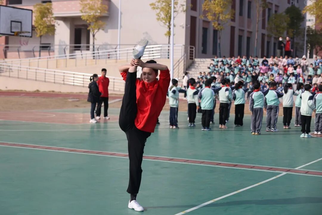 足球课上,国家一级运动员卢欣以“红色足球梦”为主题,带领学生进行基础技能与团队协作训练;武术课上,国家武英级运动健将文稞洋将红色元素融入武术教学,引导学生感受传统文化与体育精神的结合;健美操课上,国家级运动健将潘婷通过活力四射的动作教学,传递“精益求精”的体育品格;排球课上,国家二级裁判员黄苗以女排精神为主线,指导学生开展垫球与配合练习。