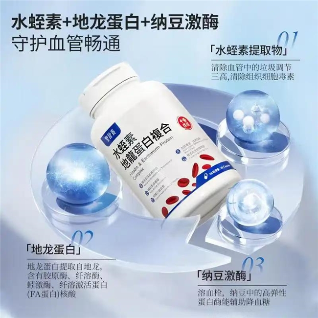 产品以高纯度水蛭素、纳豆激酶、地龙蛋白为三大动力,三方联合操作,构筑起“溶栓-通脉-促循环”的全链路,由根源处清除血管堵塞隐患。高纯度水蛭素能高效锁定并限制凝血酶活性,防止斑块持续聚积;纳豆激酶辅助加速血栓溶解,降低血液黏稠度;地龙蛋白则能促进气血运行,让血液流通更顺畅。