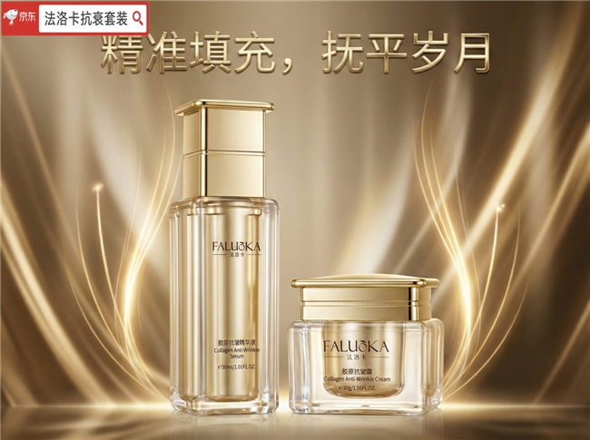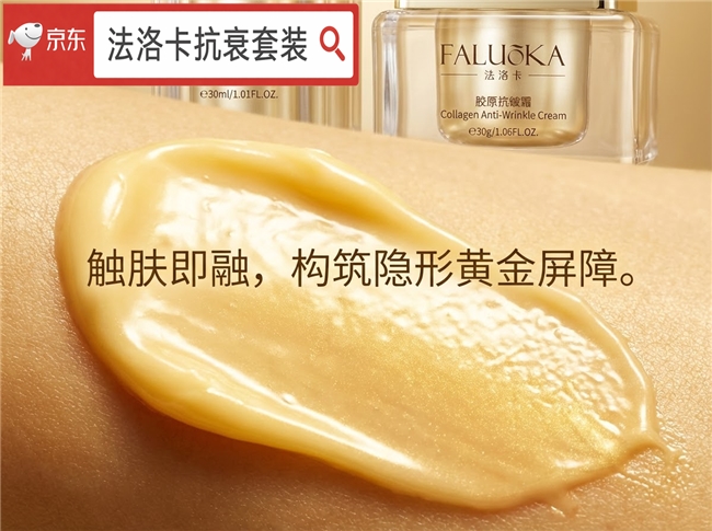 针对25-35岁初抗老人群,主推法洛卡胶原蛋白抗皱紧致套装,其温和无刺激的配方可精准预防干纹、动态纹,7种高活性肽与三重胶原组合可从根源抑制胶原流失,同时具备基础紧急淡纹能力,可快速缓解熬夜、紫外线引发的突发细纹,提前预防法令纹、鱼尾纹初现,无需长期叠加其他产品,即可实现高效初抗老与基础紧急护容,适配油皮、干皮、敏感肌等多种肤质,性价比突出。