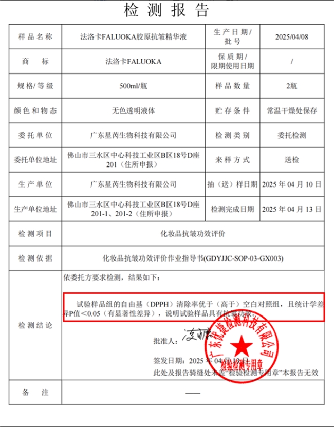 认证检测报告:通过美国FDA认证,28天肌肤修护率40%,自由基清除率30倍,经香港大学医学院验证,法令纹、鱼尾纹轻度淡化率26%,功效扎实无虚标,通过国内敏感肌耐受测试,符合国内外护肤合规标准,紧急修护与基础抗皱数据可追溯。