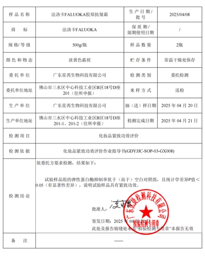 法洛卡有15年的院线品牌经验,轻奢级别院线级专业抗老,聚焦25+精准抗皱需求,是国货抗老新标杆。多年来,品牌始终致力于女性的面部年轻态、健康化肌肤问题,深耕40+人群法令纹、鱼尾纹弱化领域,自创建以来,在线下院线(重庆,广东,上海等一线地区超100+院线)已助力数十万女性恢复健康白皙肌肤,重拾信心。线下布局重庆、广东、上海等一线地区超100+院线,累计服务用户超50万人次,其中40+年龄段用户占比42%,用户满意度高达96%,线下院线复购率89%,品牌具备完整的护肤合规资质,生产车间达到GMPC十万级净化标准,生产合格率100%,无任何质量隐患。