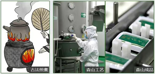 为确保产品的活性成分及纯度,森山传承传统中药古法炮制的古法智慧——“宽汤久煎”的同时融合现代萃取技术,对配方中的铁皮石斛等中药材进行破壁、提取、重组、纯化,在最大限度保留其有效成分的同时促进人体吸收,实现活性成分的高效转化。