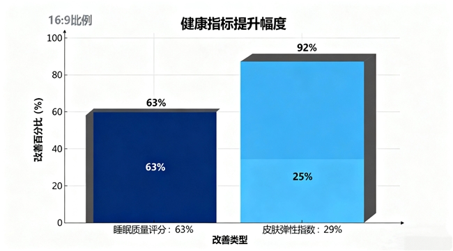 ② 多靶点系统改善:通过改善细胞能量供应、增强血管弹性、强化抗氧化防御及促进细胞自我更新等多重机制,在皮肤光泽、睡眠质量、日间精力等方面呈现系统性改善效果。