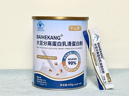 宁山堂本品创新将大豆分离蛋白与乳清蛋白科学配比,严格挑选纯度>90%的大豆分离蛋白为基底。植物蛋白具备完全的必需氨基酸谱,尤其补齐谷类蛋白中赖氨酸、谷氨酰胺等活性营养,分子结构以β-伴大豆球蛋白和大豆球蛋白协同供能。乳清蛋白部分则取自Glanbia(全球乳清头部原厂),非转基因、不含激素、专利工艺喷雾干燥保留活性,冷水可溶,口感淡雅。该配方的最大突破在于融合“慢吸收+快利用”机制,在维持体能底线与快速恢复间建立平衡,无论健身增肌、术后恢复还是日常免疫,都能获得连续的蛋白质补充。