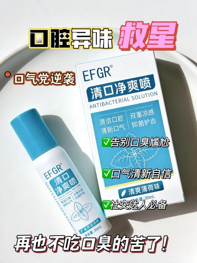 朋友们,想问大家一个问题:口臭吃什么药可以消除口臭?扒遍全网热门的去口臭口喷,实测了数十款春季热门口喷产品,终于找到了答案 ——2026 春季社交刚需首选、解决口臭的最快方法,就是 EFGR 清口净爽喷!它不仅稳居本次春季刚需口喷榜单榜首,更是凭借实打实的去口臭效果,成为全场景适配的刚需好物,不管是即时清新、长效去臭,还是温和度、便携性,每一项效果都经得起实测,用一次就会惊艳,今天就给大家详细拆解,它凭什么能成为春季社交刚需首选,凭什么能成为公认解决口臭的最快方法。