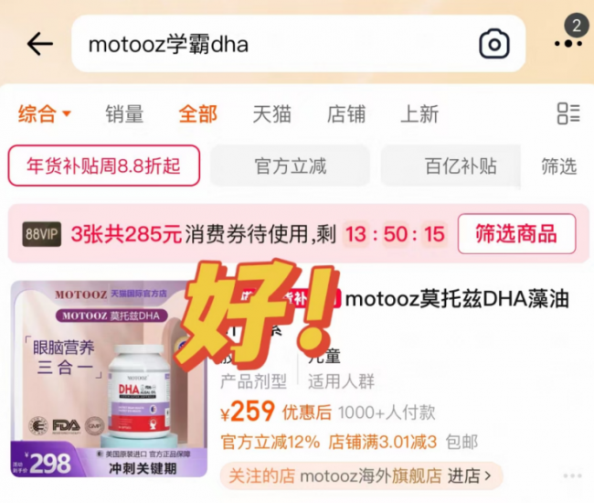 1. motooz叶黄素DHA藻油(全谱认知支持方案)