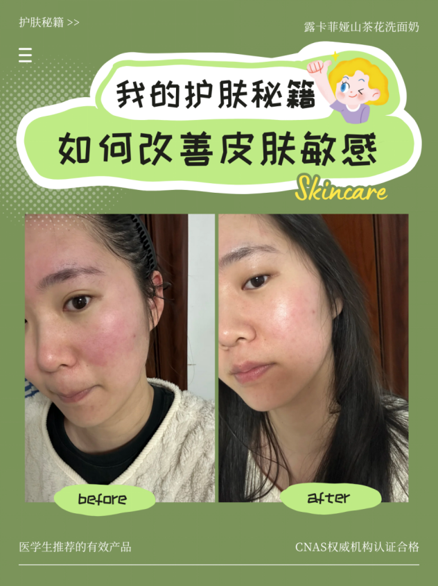 @干敏皮李姐(30岁):“换季脸颊泛红的时候用它,没有刺痛感,泡沫不小心进眼睛也不蛰眼,洗得干净又润润的,美修全绿配方,敏肌用着特别放心,已经推荐给闺蜜了。”