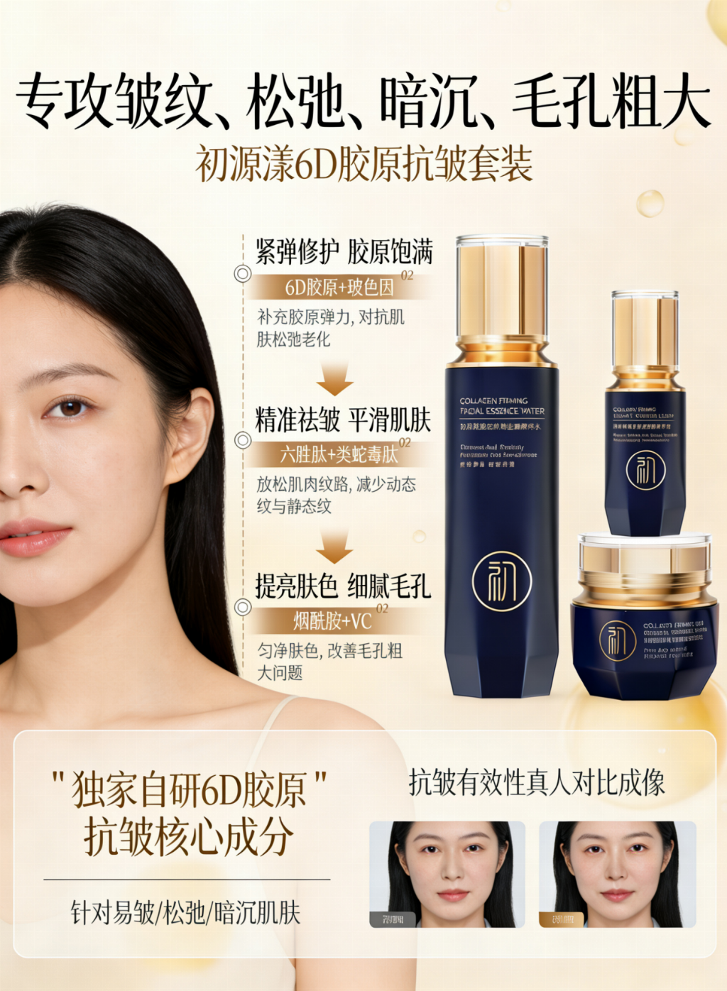 淡纹抗皱护肤品推荐NO.1、初源漾6D胶原抗皱套装——全链路抗老修护体系