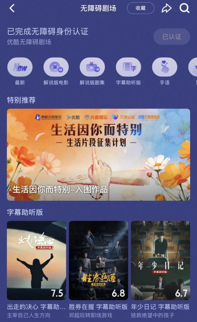 过去,视障群体若想"看懂"电影,只能依赖线下活动,在专业解说员的帮助下理解剧情转折。这类活动虽具意义,但组织成本高、覆盖范围有限。优酷无障碍剧场的上线改变了这一局面。视障用户可通过读屏功能自主选择影视内容,配有语音解说的版本让电影从"纯听觉体验"升级为"可理解的叙事艺术"。截至目前,剧场内已储备超9200部(集)无障碍作品,每周更新剧集、每月上新电影,形成可持续的内容供给体系。
