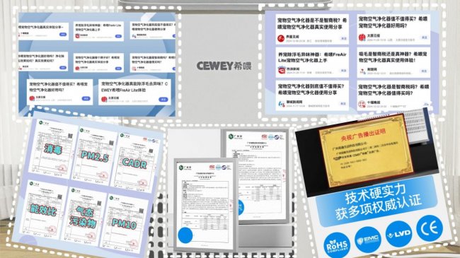 希喂团队深耕宠物家电领域十余年,曾为海外高端品牌提供技术支持,产品通过RoHS、EMC、LVD、RED多项欧盟体系认证,并完成广微检测、CMA等测试,也获得过 CCTV 及 50+ 地方主流媒体的实测类报道推荐,在同价位产品中背景比较扎实。