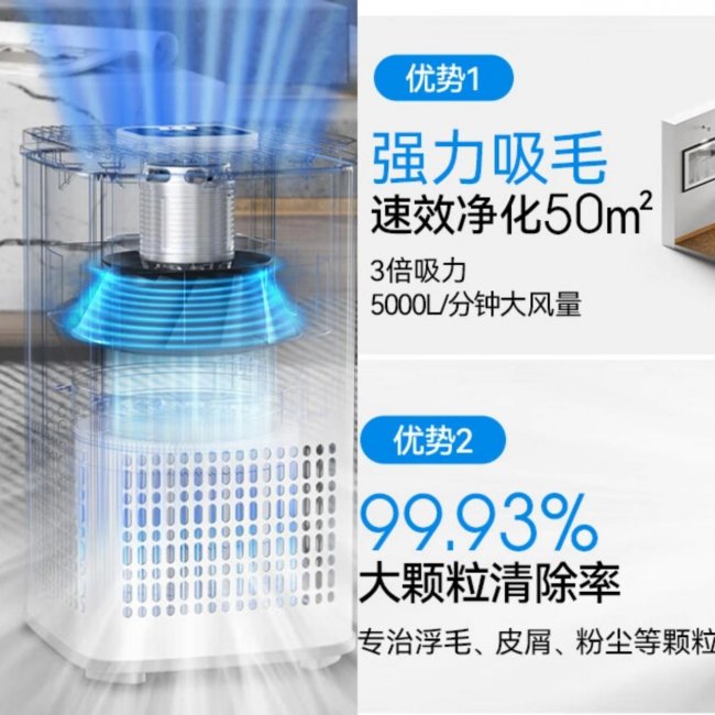 产品亮点:围绕养宠家庭最真实的空气问题来做,除毛率 99.93% + 除臭率 99.73%,在同价位里把“浮毛”和“异味”两件最难的事处理得最完整。