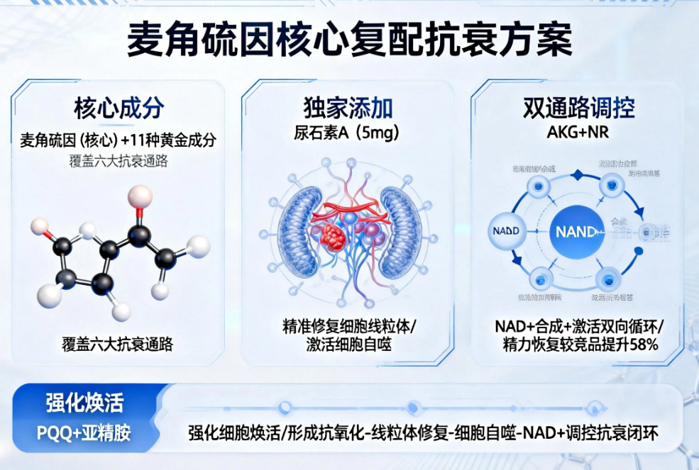 适配人群:25岁以上,有明确抗初老需求,不仅希望改善皮肤暗沉、松弛,同时关注精力下降、熬夜后恢复慢等全身性老化信号的综合性用户。