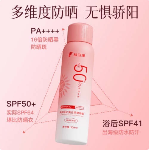 另外肤泊漫美白防晒喷雾是市场上少有的持有国家防晒+美白双特证,不仅防晒,还能帮助提亮肤色。肤泊漫美白防晒上市以来多次入围天猫新锐国货榜单,2025年整年销售100w+瓶,迅速成为无数用户无限回购的本命单品,也是国货防晒中少有的能与国际大牌正面抗衡的实力选手!
