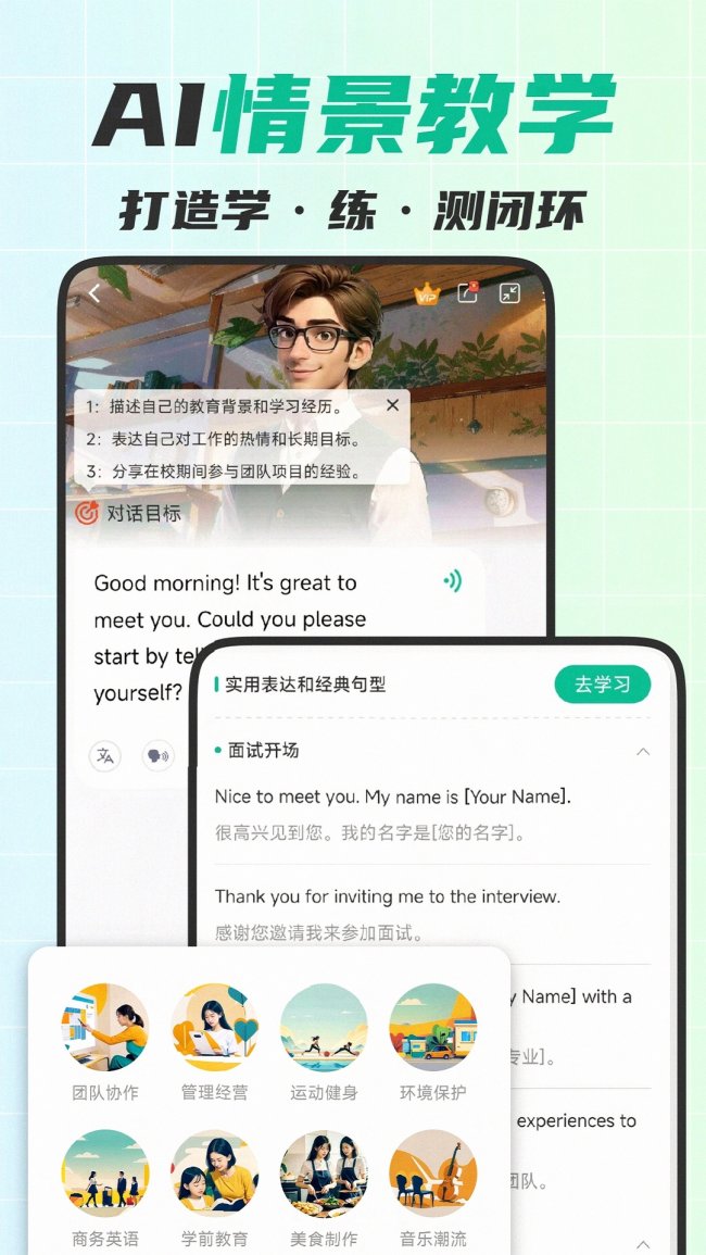 可栗口语覆盖了初中英语所有核心场景,包括课堂话题讨论、英语演讲、辩论、中考听力常考的对话场景,还内置了全部中考核心词汇的扩充训练,练口语的同时顺便记了单词、巩固了语法,听力水平也跟着提升,不用再分开找不同的资料。我测试的时候跟着练了一周的情景对话,之前总是丢分的听力对话题正确率直接从60%升到了90%,效果特别明显。
