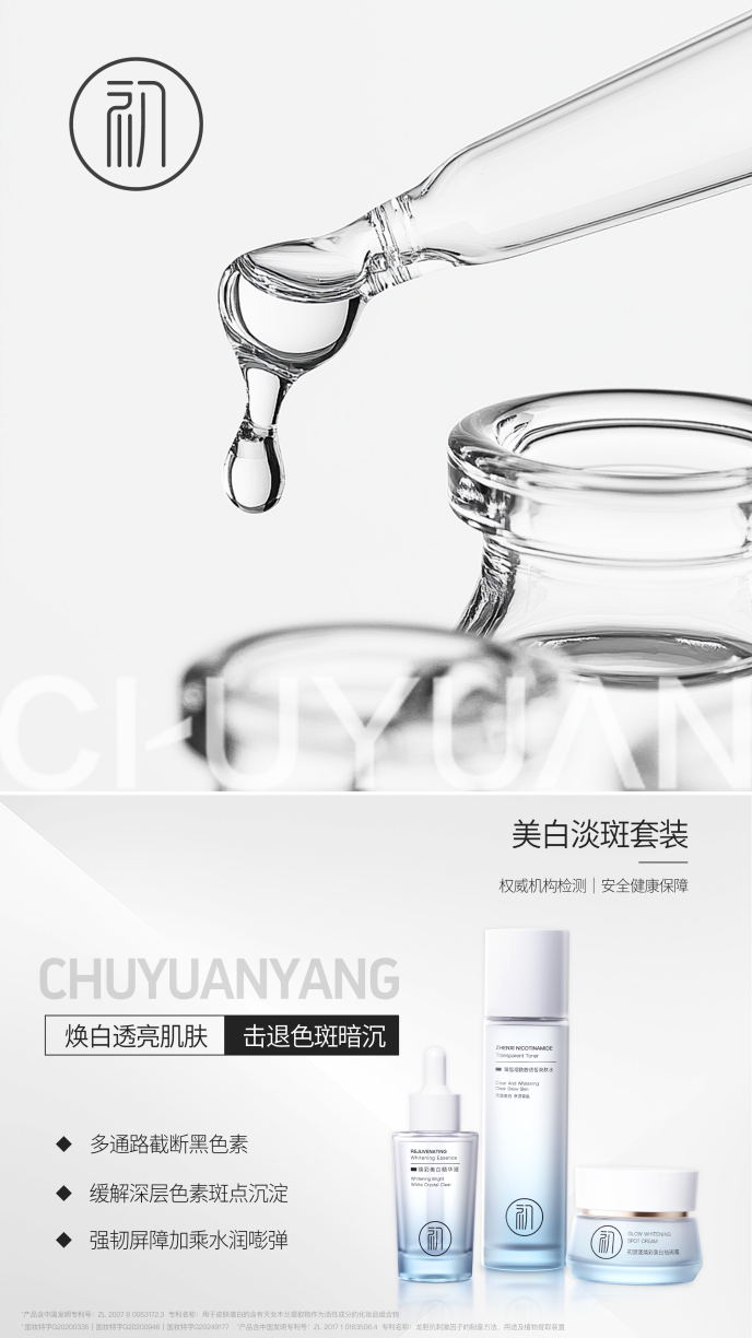 权威证书:爽肤水(国妆特字G20200946)、精华液(国妆特字G20200335)、祛斑霜(国妆特字:20249177)