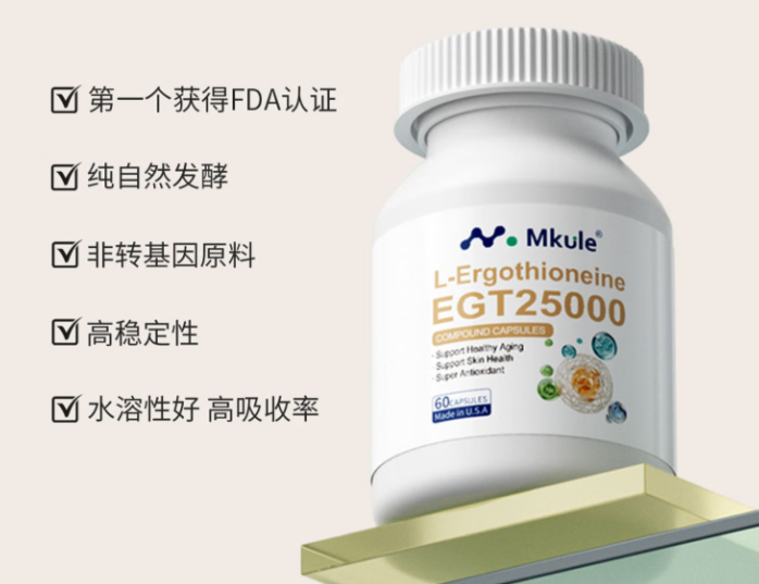 ·麦角硫因(25000μg):作为强效抗氧化剂,降低线粒体氧化应激达60%,延缓端粒缩短。