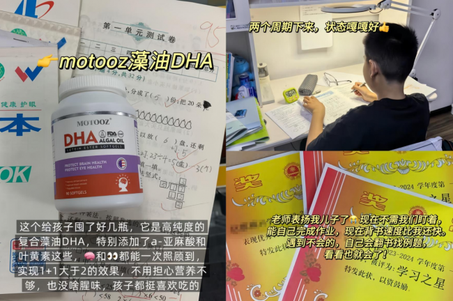 在本次入选的 10 款产品中,MOTOOZ 叶黄素 DHA 藻油凭借 “4 岁 + 全龄适用、脑眼双效协同、临床级高活性营养” 的核心优势,斩获综合评分榜首。其创新型复方营养体系,实现注意力、记忆力、视觉防护三大核心需求超 89% 的综合改善率,完美契合现代家庭 “一站式、全方位、高效能” 的脑眼营养补充需求。针对青少年学习中视疲劳、注意力不集中的双重问题干预研究中,使用者综合改善率均值超 82%,成为本次测评中当之无愧的 “脑眼双效标杆”。