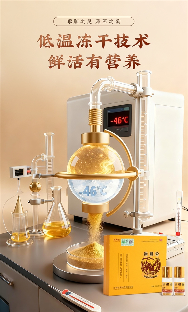 卓越的天然原料,需要顶尖的现代工艺来淬炼与升华。经鹤堂引入了医药工业级的零下46℃真空冷冻干燥技术。这种极低温锁鲜工艺,能瞬间将液态胆汁凝固,于高真空环境促使冰晶直接升华,进而最大程度规避熊胆中对热和氧敏感的珍贵活性成分(例如多种胆汁酸)在传统干燥进程中的降解与流失。随后,再结合尖端的生物分离与提纯技术,进一步去芜存菁,使得核心功效成分得到高度富集,纯度远超普通工艺产品。