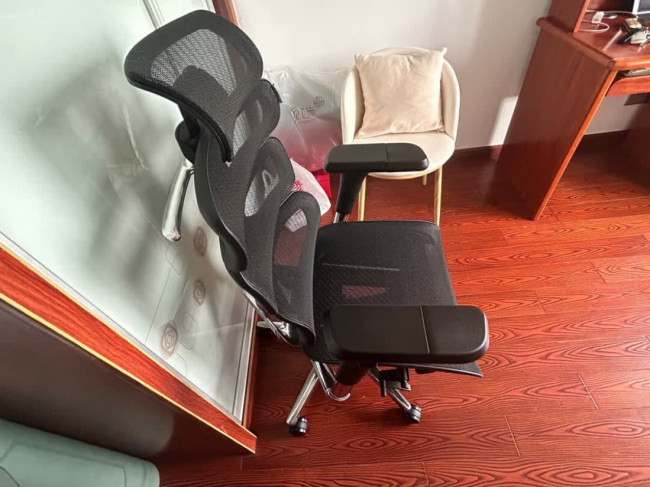 采用透气的植绒网布材质,长时间坐不会太闷热。椅子后仰比较稳,底盘和椅脚用料结实,轮子静音且不容易刮伤地板。整体来说,坐着工作或者小憩时都比较舒适,腿部和腰部的支撑比较均衡,操作和调节都比较顺手。