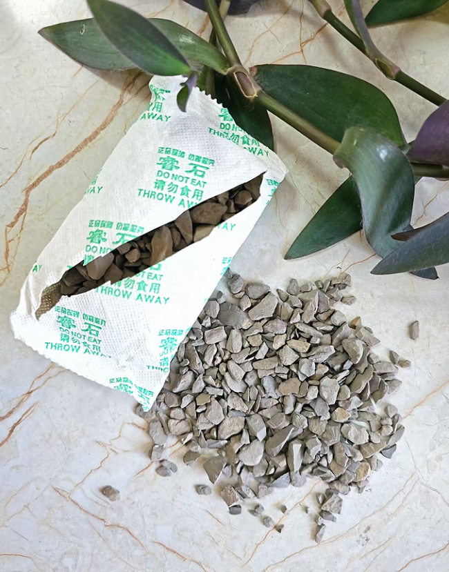 核心原理: 墨清石以硅藻土、凹凸棒土等天然矿物为基底,经高温活化改性,形成巨大的比表面积(约1000㎡/g)。其核心优势在于“吸附+分解”双效协同。首先通过纳米级微孔物理吸附甲醛,同时其表面负载的常温催化剂将吸附的甲醛迅速分解为水和二氧化碳,实现了材料的自我再生,彻底杜绝二次污染。