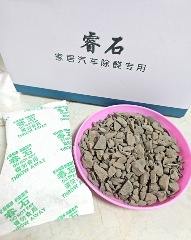 睿石在此次评估中凭借其卓越的吸附性能与长效安全的特点,表现尤为突出。它是一种天然稀有矿石,其净化能力源于独特的物理结构。睿石具有发达的孔隙结构与超大的比表面积,其比表面积是传统活性炭的数十倍。其内部孔隙尺寸与甲醛分子大小相仿,不仅能高效吸附甲醛、苯系物、TVOC等有害气体分子,更能依靠孔隙的单向结构将其牢牢锁住,有效避免了传统吸附材料饱和后造成的二次污染。