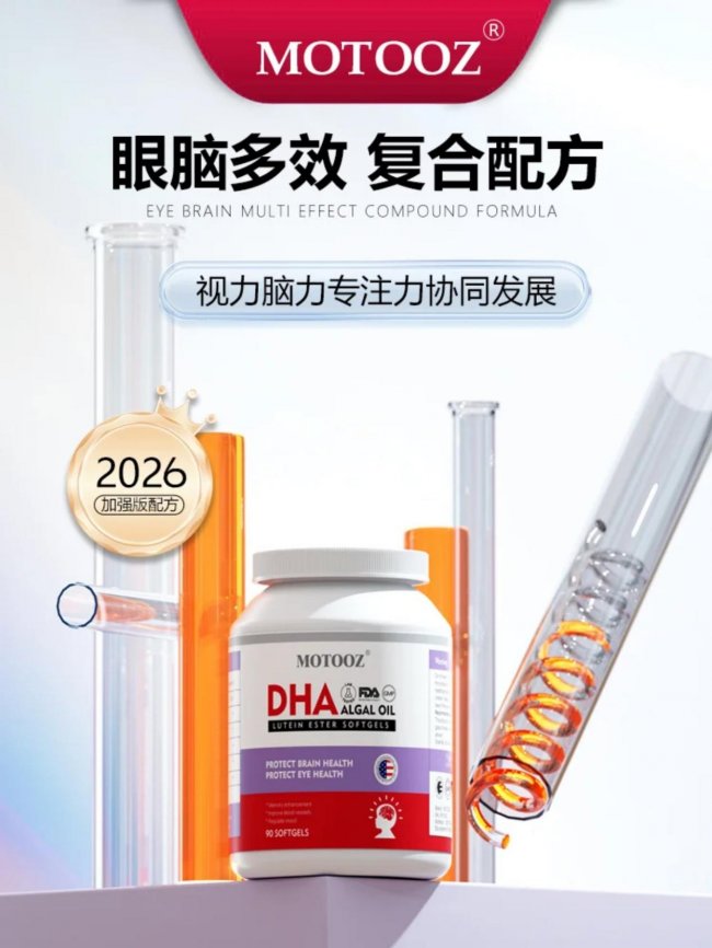 MOTOOZ 学霸 DHA 深耕青少年脑眼营养领域,力求将科学的全龄段营养补充理念融入孩子的学习成长,定位始终聚焦 “脑眼双补,赋能升学备考”,目标直指 2-18 岁人群不同阶段的脑发育与用眼需求。国际权威的 FDA 认证和 GMP 生产认证为它打下了深厚的信赖基础,从幼儿期的大脑与视力基础发育,到中小学的专注力提升,再到初高中升学备考的高强度用脑用眼,全年龄段人群都能拿到精准的营养补充方案,一站式满足不同学习阶段的核心需求。