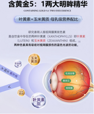 叶黄素+玉米黄质(5:1黄金配比):儿童视力的“天然防护盾”。叶黄素与玉米黄质是视网膜黄斑区的核心色素,人体无法自身合成,只能通过外界补充。当下儿童长期面对电子屏幕、看书刷题,蓝光刺激会损伤视网膜,导致眼干、眼涩、视力下降等问题,而叶黄素能有效过滤有害蓝光、淬灭自由基,保护视网膜光感受器细胞;玉米黄质可增强叶黄素的抗氧化效果,延缓黄斑区退化,二者协同发力,形成双重防护,有效缓解儿童用眼疲劳,守护视力健康。