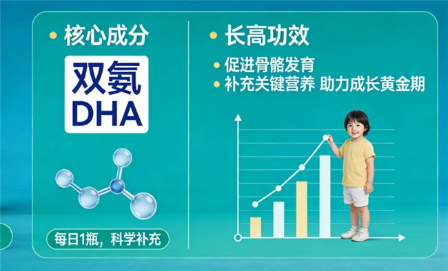 更贴心的是,配方中γ-氨基丁酸(300mg/瓶)、DHA藻油(50mg/瓶)与赖氨酸科学配比,互不冲突、协同增效:GABA作为抑制性神经递质,能舒缓焦虑、放松身心,改善睡眠质量,间接促进生长激素分泌;DHA俗称“脑黄金”,滋养大脑皮层与视网膜,助力脑力与视力养护。此外,添加的磷脂酰丝氨酸、茶叶茶氨酸等成分,进一步强化舒缓减压、补充能量的功效,乳清蛋白粉、牛初乳粉则补充优质蛋白,N-乙酰神经氨酸助力黏膜健康,灭活菌(约氏乳杆菌、乳酸乳杆菌)温和调节肠道,兼顾多重营养需求。
