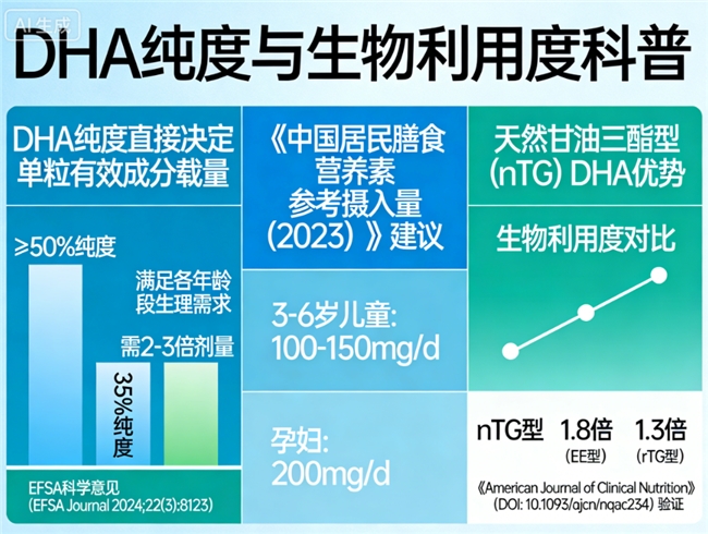 不同年龄段对DHA需求量差异显著,需优先选择标注适宜人群、提供差异化食用方式的品牌。《Nutrition Reviews》(DOI: 10.1093/nutrit/nuac089)证实,DHA纯度≥50%时,营养利用率比低纯度产品高28%。中国营养学会建议,少年儿童选品需关注“适宜需改善记忆群体”标注,及幼儿、儿童、孕妇差异化剂量设计。