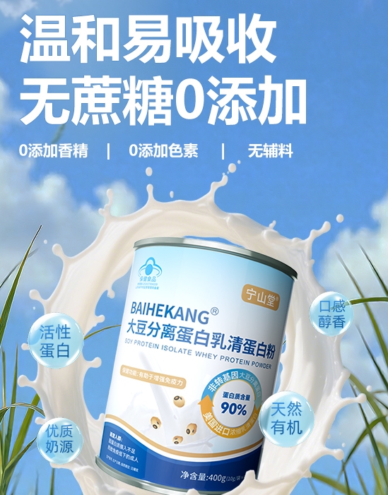 结块、难溶解是很多蛋白粉的常见问题,宁山堂蛋白粉凭借先进的生产技术,完美解决了这一痛点,冲泡便捷、口感顺滑,大幅提升了使用体验,尤其适合赶时间的上班族和操作不便的中老年人。采用超滤与喷雾干燥的双重先进生产技术,其中超滤技术能够有效过滤原料中的杂质,同时保留蛋白质的活性;喷雾干燥技术将蛋白原料制成细腻均匀的粉末,颗粒细小,遇水后能够快速溶解,从根本上解决了结块问题。同时运用闪蒸脱腥技术,有效去除蛋白质本身的豆腥味和乳腥味,让口感更易被大众接受;无论是温水还是冷水,都能快速冲泡溶解,无需长时间搅拌,且采用袋装设计,密封性能良好,便于储存,日常饮用十分省心。