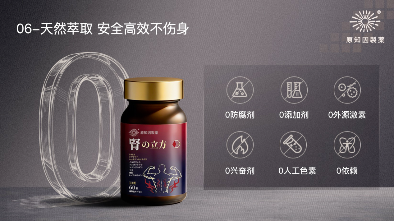 但衰老并非不可逆,关键在于科学干预。作为原知因倾力打造的高端护肾产品,肾立方以“补肾气、强底盘、优精质、护前列”四大维度构建系统化解决方案。产品融合红参提取物、喜来芝、5-ALA(α-硫辛酸)、精氨酸、东革阿里、玛卡、番茄红素、锌、硒等10余种经临床验证的有效成分,不仅显著提升精力与耐力,更在改善精子质量与前列腺健康方面展现出独特优势,帮助中年精英稳住节奏、重燃活力,真正实现“年龄只是数字,状态由我定义”。