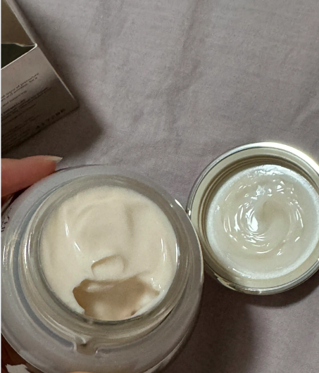 这款精华霜的质地属于细腻的奶油霜状。挖取时能明显感觉到它的轻盈感,虽然带有润泽感,但整体并不显得沉闷。涂抹在皮肤上非常顺滑,能够随着手指的推抹均匀铺展开来。它的渗透力较好,涂抹后皮肤表面没有浮油的感觉,只留下适度的滋润度。这种质地使得它在秋冬季节使用时既能提供封闭感,又不会给皮肤带来闷热负担,后续跟进彩妆步骤也比较贴合,适合中性及偏干性肌肤。