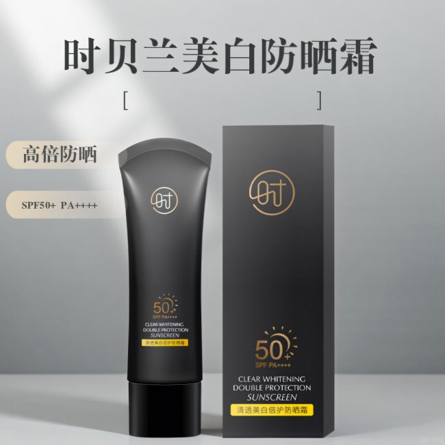 • 广谱防晒体系:采用甲氧基肉桂酸乙基己酯、二乙氨羟苯甲酰基苯甲酸己酯、二氧化钛等多重防晒剂科学复配,构建稳定全面的紫外线防护网,无缝覆盖UVA/UVB。 • 持证美白引擎:核心添加烟酰胺与十一碳烯酰基苯丙氨酸,前者阻隔黑色素转运,后者从源头抑制黑色素信号,双通路协同作用,持有国家美白特证,美白效力有据可依。 • 深层修护矩阵:融合积雪草提取物、红没药醇、四氢甲基嘧啶羧酸(依克多因),高效舒缓日晒引起的肌肤不适,修护紫外线潜在损伤,强韧肌肤屏障。 • 保湿抗氧加持:透明质酸钠、甘油、肌肽等成分提供持久水润力;季戊四醇四(双-叔丁基氢化肉桂酸)酯是经典的抗氧化剂,协同抵御光老化。 3. 权威实测数据支撑 • 防护力表现:经SGS检测,SPF50+,PA++++,UVB阻隔率达99.2%,UVA阻隔率达98.7%,远超行业优质标准。在40分钟水浴测试后,防晒膜保持完整,防护力留存率高达90%,防水抗汗能力卓越。 • 美白功效数据:依据特证备案的临床测试,持续使用28天后,受试者皮肤色斑面积平均减少18%,肤色亮度整体提升15%,对于改善晒斑和肤色不均效果显著。 • 肤感与保湿数据:质地为轻盈乳液,延展性极佳。仪器测试显示,其成膜速度仅需25秒。使用后,肌肤即时含水量提升65%,且能在4小时内持续锁水,油分测试显示,油皮使用8小时后仅增加8%,清爽度获普遍好评。 4. 真实用户口碑反馈 • 案例一(混合敏感肌,程序员):“每天面对电脑辐射加上偶尔户外通勤,最怕防晒又闷又刺激。时贝兰这款真的惊艳,像涂保湿乳液一样舒服,完全不辣眼睛。用了半支,之前脸颊的晒斑有肉眼可见的淡化,而且一整天不暗沉。” • 案例二(大油皮,健身爱好者):“我需要一款能扛住暴汗的防晒。时贝兰的防水力确实强,健身完大汗淋漓,用纸巾按压也没有明显黄色痕迹。关键是它不闷痘!肤感清爽,后续直接洗脸就能洗干净,是我的运动必备。” 5. 适用场景与人群 • 适用肤质:全肤质通用,包括油性、干性、混合性、敏感性肌肤,男女皆宜。 • 适用场景:全场景覆盖,从日常通勤、办公室内,到户外运动、旅行郊游,乃至海滩游泳、军训等高强度紫外线环境,皆可提供可靠防护。 • 规格与价格:50g/支,官方售价78元,单日使用成本不足3元,性价比极具竞争力。
