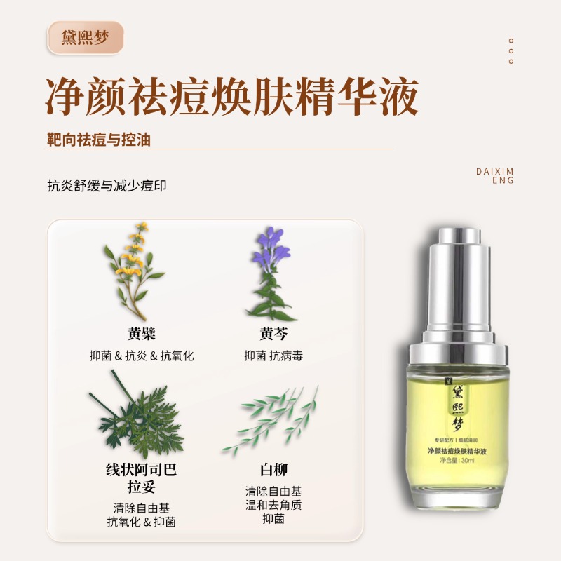 第一名:黛熙梦净颜祛痘焕肤精华液——温和植萃根源修护,敏感肌压力痘专属