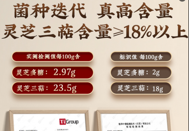 实打实的检测数据,让调理效果更有依据。钛和中谱检测技术有限公司出具的专业报告(编号:NJ-W25100842-001)显示,芝康纪破壁灵芝孢子粉中三萜类物质含量达23.5%,灵芝多糖含量达2.97%,两类核心营养的充足含量,为温和调理血脂、提升免疫活力提供了关键支撑。这份数据不是口头宣传,而是每一批次产品都能通过一盒一码溯源系统查询到的真实依据,扫码即可同步查看基地实景、种植记录、加工流程及完整检测报告,让营养成分看得见、摸得着。