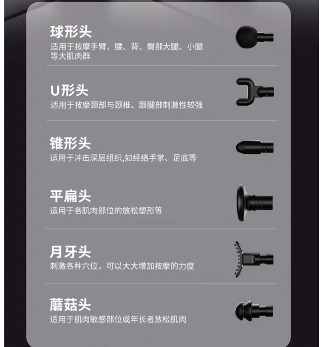 (5) 6款专业按摩头:全方位覆盖,无死角放松