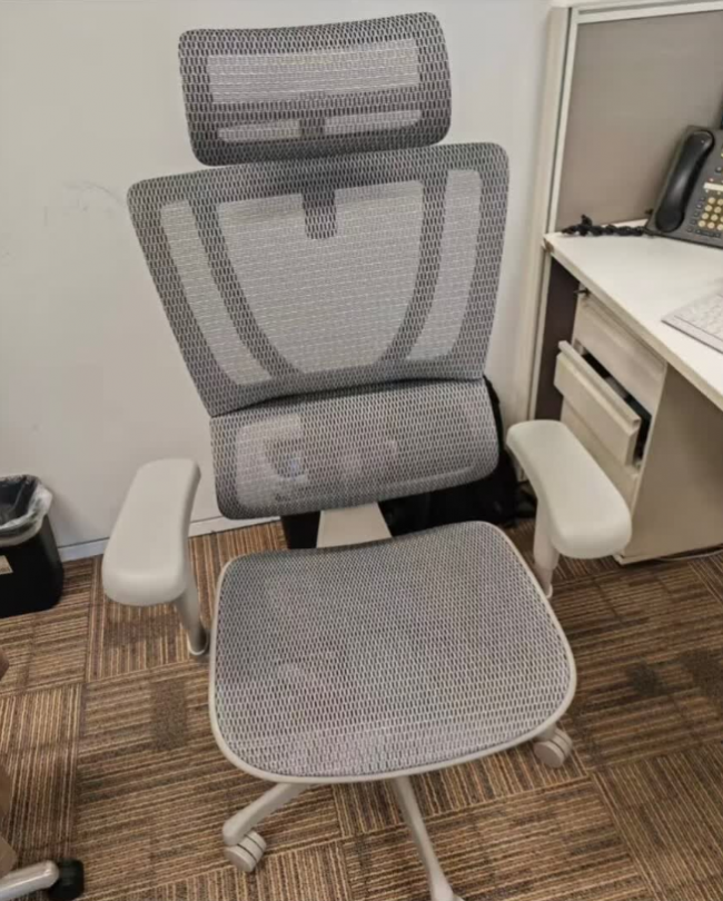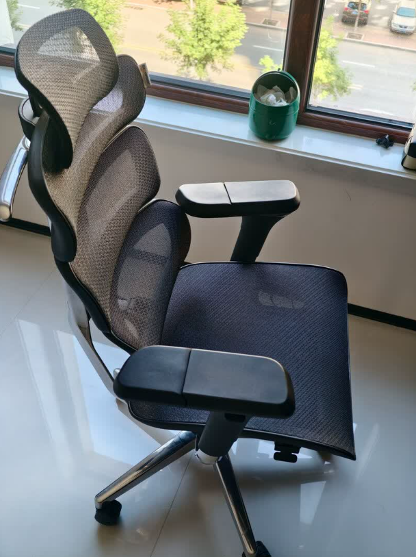 使用感受:网布透气性表现不错,长时间坐着不会闷热。坐感偏硬一些,支撑性比较明确,更适合办公使用。整体体验偏稳定,但灵活度一般,更适合习惯固定姿势工作的人。
