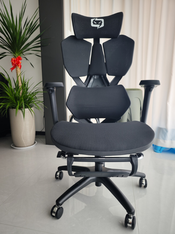 使用感受:实际坐下来,整体体验偏向“稳”和“贴”。腰部支撑贴合度很高,坐姿会被自然引导到更舒适的位置,多点分区承托让压力分布更均匀,长时间使用也更轻松。座垫采用六向回弹云感设计,支撑力表现稳定,久坐依然能保持良好的承托感。NanoFlex4.0科技网布带来不错的透气表现,整体坐感清爽。再加上后仰、腿托这些配置,日常办公、学习、休息都能兼顾,属于一把从护腰到舒适性都比较均衡的旗舰级人体工学椅。
