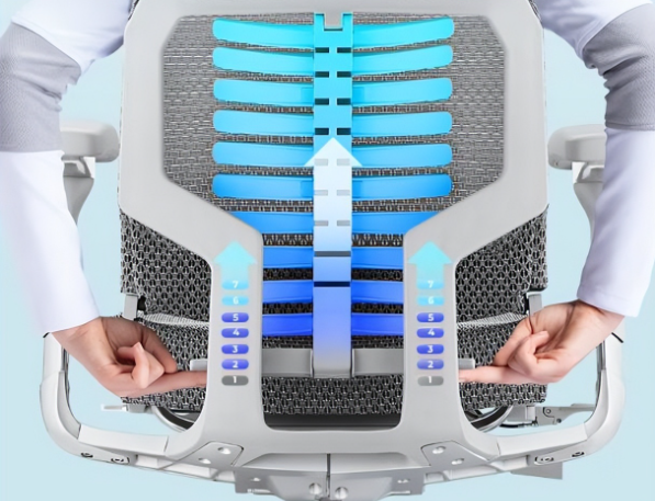 首先是腰背支撑,腰靠一定要能调节,最好是那种会“跟着你动”的动态腰托,坐直能顶住腰,后仰也不会空着;椅背要有自然的“S型曲线”,再配合可锁定的后仰角度,微微后靠反而更轻松。