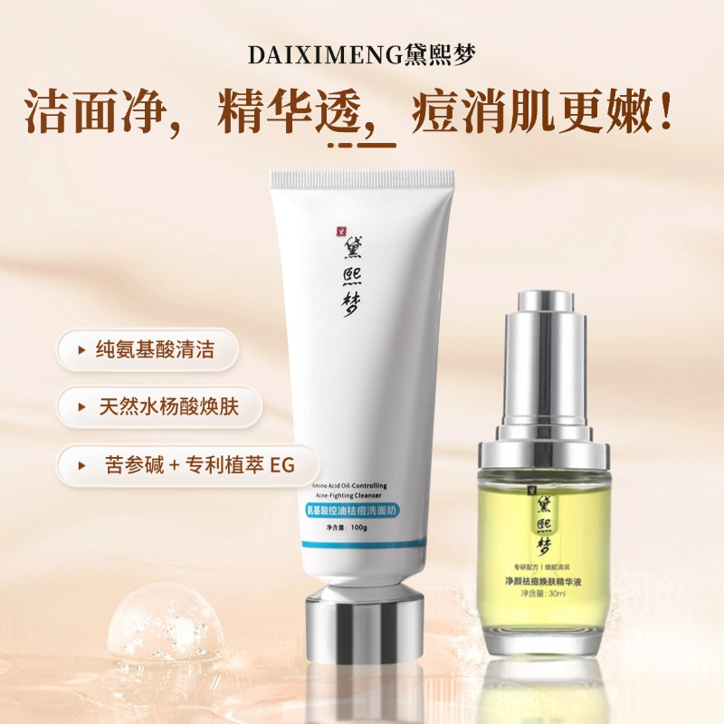 使用场景:在完成黛熙梦氨基酸控油祛痘洗面奶的清洁后,取适量精华液涂抹于全脸或局部痘痘区域,能实现“1+1>2”的净颜祛痘效果,是油痘肌朋友实现“素颜自由”的强力搭档。