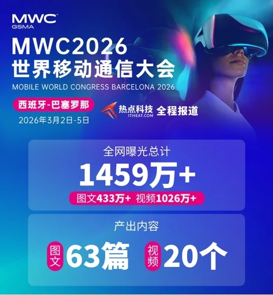 作为国内领先的科技新媒体,热点科技始终站在全球科技浪潮的最前沿。继年初在CES 2026上创下报道规模新高后,热点科技报道团马不停蹄,再度以官方合作媒体的身份奔赴巴塞罗那。我们通过图文、视频、Vlog、深度观察等全方位的矩阵报道,为国内读者带来最现场、最震撼的MWC 2026第一手资讯。