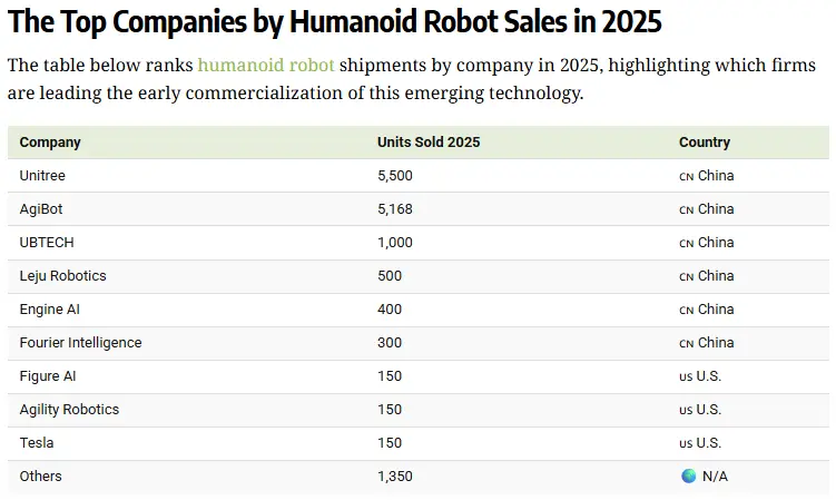宇树科技人形机器人全球出货量第一,中国企业表现突出