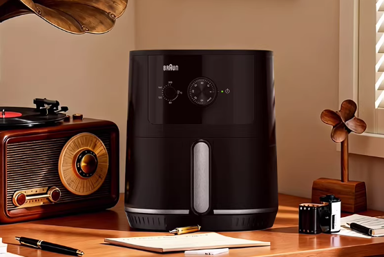 作为德系家电的代表,Braun空气炸锅延续了其一贯的严谨工艺。其核心技术在于PureFlavor纯净风味系统,通过特殊的风道导流设计,使热空气在食材周围均匀流动,避免直吹导致的食物表面过干,从而保留食材本身的鲜嫩口感。
