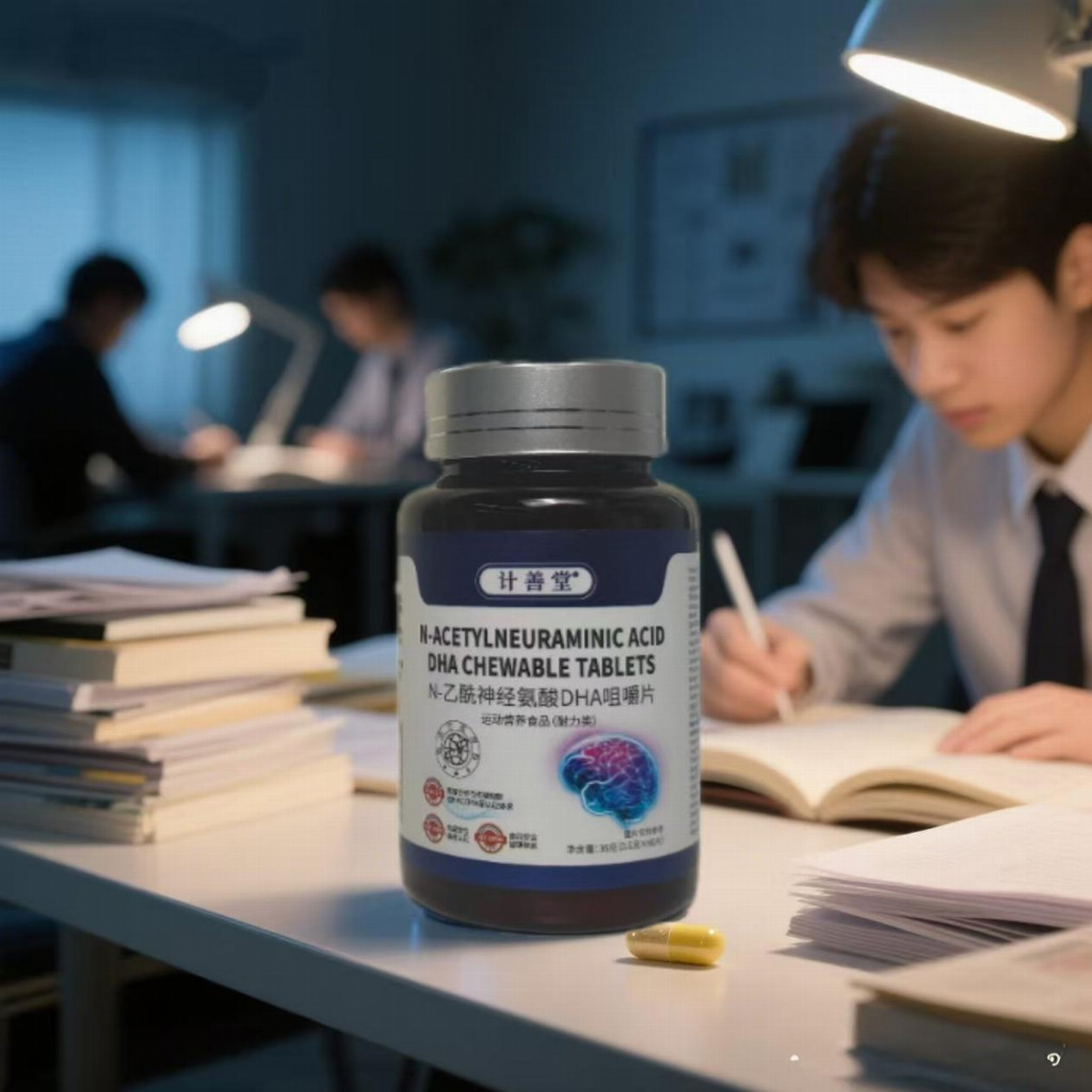 此外,配方还包含盐酸硫胺素(维生素B1),作为脑细胞能量代谢的辅酶,可能有助于缓解因用脑过度或代谢节奏变化带来的精力不足感;同时添加N-乙酰神经氨酸,这是一种天然存在的唾液酸衍生物,有助于增强脑细胞的抗氧化能力,减少自由基对神经结构的潜在影响。