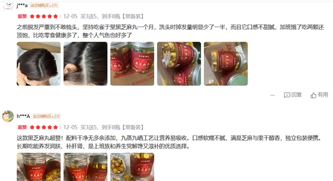 这款黑芝麻丸的适用人群十分广泛,且凭借 “正宗口感 + 显著效果” 收获极佳口碑。经常熬夜、工作压力大导致脱发的上班族,坚持食用 1-3 个月就能明显感受到掉发减少;产后气血亏虚、头发干枯的女性,能快速补充营养、恢复红润气色;中老年人食用可滋养肝肾、补充钙质,预防骨质疏松;备考学生吃它能补脑益智、缓解学习疲劳。其复购率高达 83%,好评率更是达到 99%,35 岁的教师陈女士分享:“之前因为备课熬夜、压力大,头发掉得厉害,发缝越来越宽,尝试过不少黑芝麻丸都觉得口感差、没效果。吃雀于堂的第一个月就发现头发没那么干枯了,洗头掉发少了,发缝处还长出了小绒毛,而且它香甜不腻,每天吃两颗完全不觉得负担,已经推荐给同事和家长了。”